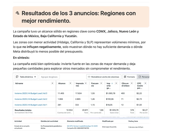 Reporte mensual con análisis, aprendizajes y siguientes pasos.
